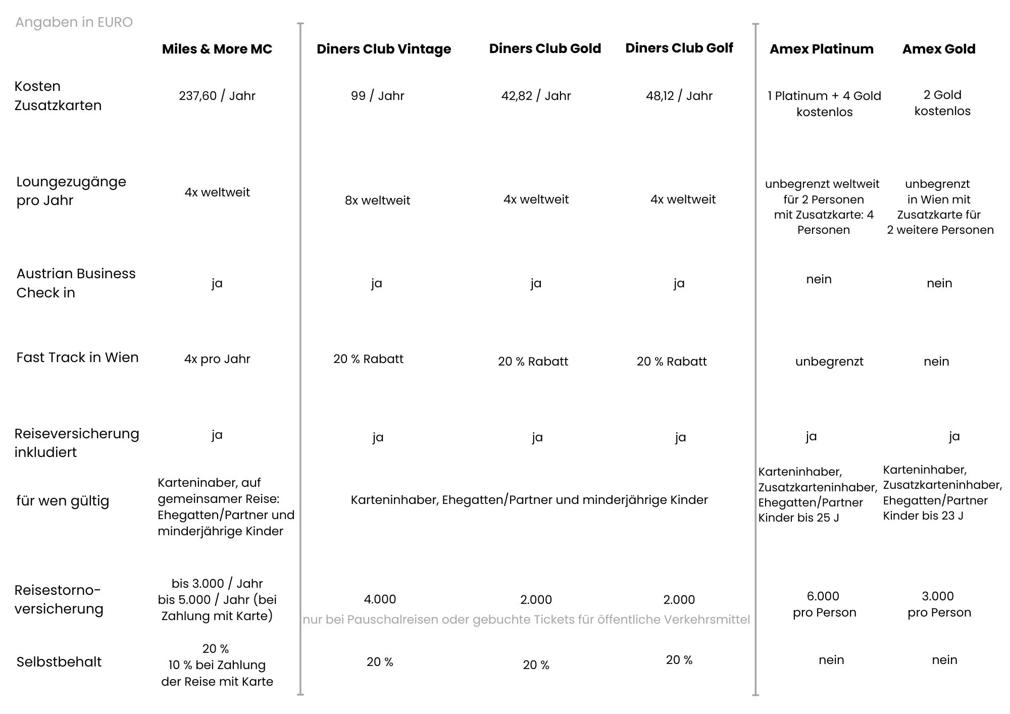 - Alle drei Gold-Karten ermöglichen unbegrenzten Loungezugang am Flughafen Wien